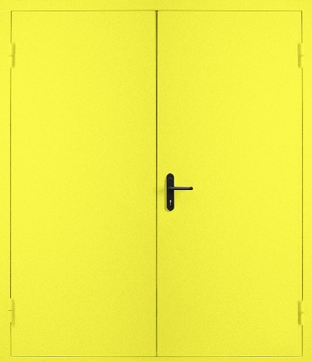 Толщина стального листа глухих дверей – 1,2 мм. Створки надёжно фиксируются. Направление открывания створок зависит от особенностей планировки и требований пожарной безопасности. В общественных учреждениях с большой посещаемостью двери открываются строго наружу, по направлению к выходу, что ускоряет эвакуацию. Вы можете заказать изделие с различным вариантом и цветом отделки: окрас нитроэмалью или покрытие порошковым напылением.