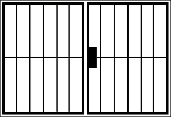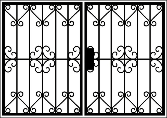 - Изделие комплектуют петлями и замком. Запирающее устройство может быть навесным или врезным. Для замка нужен специальный карман. Расстояние между прутьями распашной решетки должно быть не больше 10-15 см.