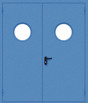 Двупольная противопожарная дверь с круглым стеклом (порошок / синяя)