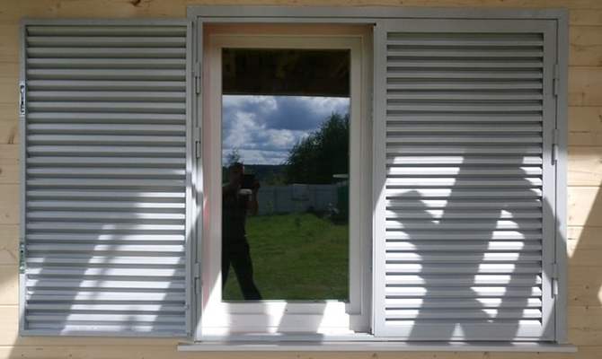 Двустворчатые ставни-жалюзи – востребованный вид защиты оконных проемов от грабителей. Кроме того, они хорошо пропускают свет, а регулируемые ламели позволяют регулировать его интенсивность.