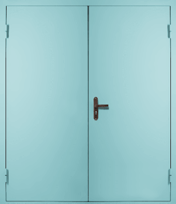 В двупольных металлических технических дверях одна из створок всегда снабжается двумя фиксирующими элементами. Если нужно сделать проход шире, штыри вынимаются.